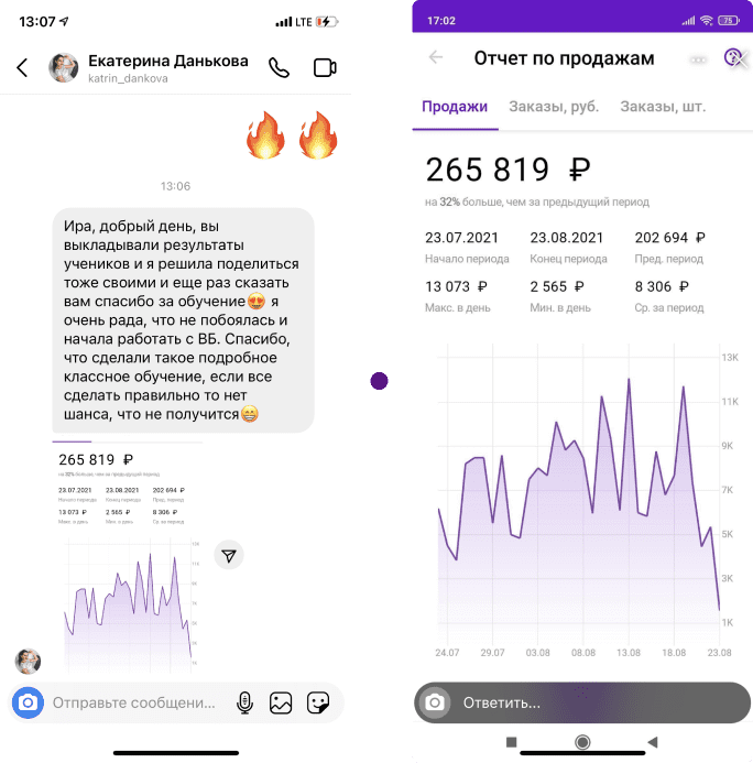 Ирина, добрый день! Хотела бы выразить Вам и вашей команде огромную благодарность за ваши курсы!!! Они кардинально изменили мою жизнь. Первый курс по оптовым покупкам из Китая я приобрела одна из первых в октябре 2020, тогда начала предпринимать действия, чтобы что-то изменить в жизни. Курс понятный, четкий и «без воды», но заказ из Китая я тогда не сделала, так как не могла определиться с нишей. К концу курса я уже твердо понимала, что хочу покупать товар в Китае и продавать на WB, и я стала ждать выхода вашего нового курса по WB. С нишей я определилась после просмотра первых 2х уроков курса по WB, на поиск и анализ я потратила всего лишь одну ночь)